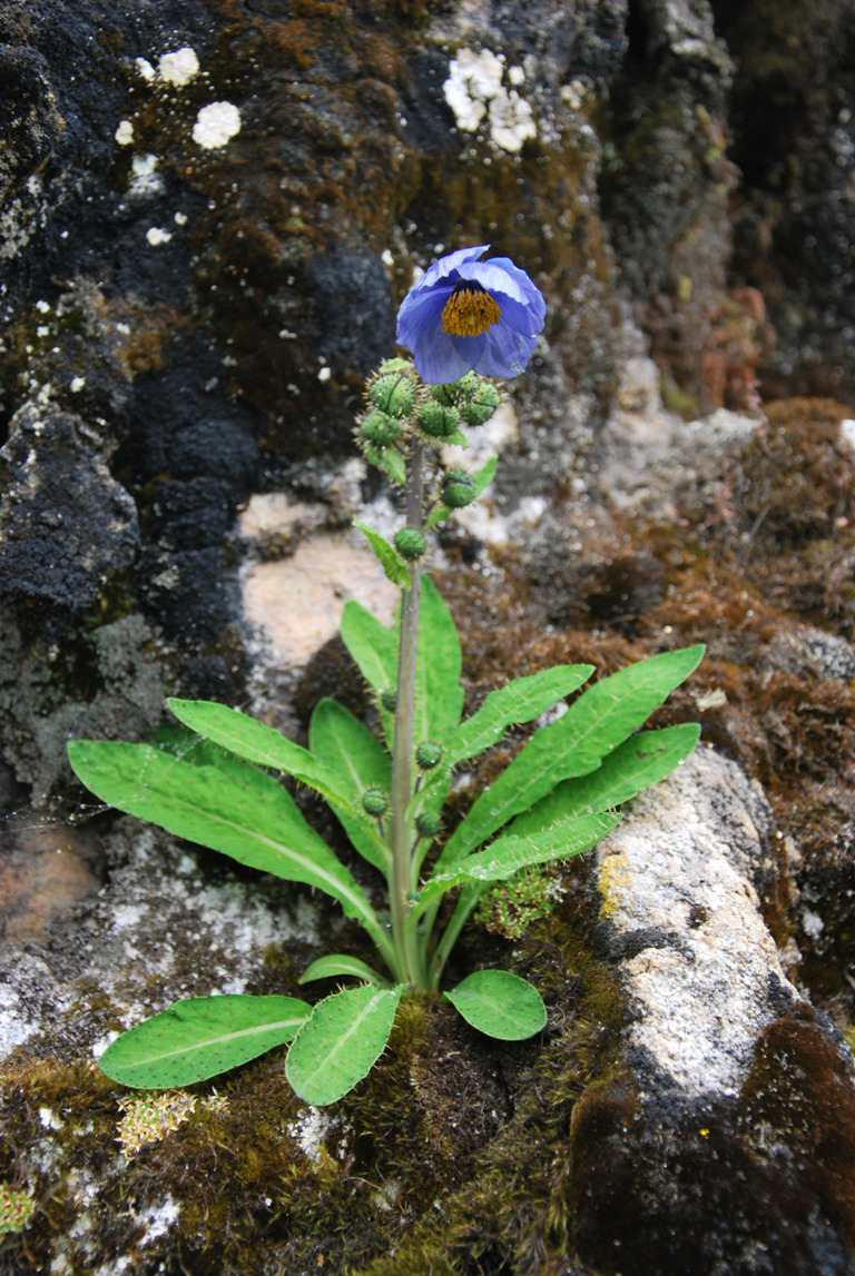 Recently various authors have started splitting up species, and a few totally new plants have been described. This will make identification more difficult especially for people with a limited knowledge of the genus.The author finds the classic taxonomic keys very difficult and often almost impossible to use. Sir George Taylor in his original monograph created something much easier to understand since he lumped together many similar described plants into a single species. Perhaps the best example was M. horridula which now has already been split back into about 9 species - and growing!. The problem here goes right back to Ray and later Carl von Linne (Linnaeus) who devised the binomial system of plant naming in about 1760 but this was before Darwin appeared on the planet and eventually formulated the concept of evolution. Within Meconopsis some species are fairly fixed with little variation but others are actively evolving and very varied over a very large geographical range. Another example of this is M. integrifolia now split into two species with a new one M. pseudointegrifolia and a number of sub species. The truth here is that this is a very variable plant over its entire range. If you take the extreme high altitude northerly (drier climate) of M.integrifolia, it is radically different from a lower altitude more southerly wet climate plant - M. pseudointegrifolia. I have grown plants from wild seeds ( under various names! ) from this pair from more then a dozen places in China and Tibet as well as having looked at many wild images and there is a complete variation between the two species and no characters reliably separate them. A final examle is the re spitting of M. betonicifolia into that and M. baileyi - going back towards the situation when Taylor lumped a lot togethger. Chris Grey - Wilson describes this split in a recent edition of the Journal of the Alpine Garden Society but in truth the only critreria (out of the nine he gives) is a smooth seed pod and even Taylor acknowledged this but claimed it was not consistent between the Chinese population ( currently M. betonicifolia ) and the distant Tibetan population ( M. baileyi ).