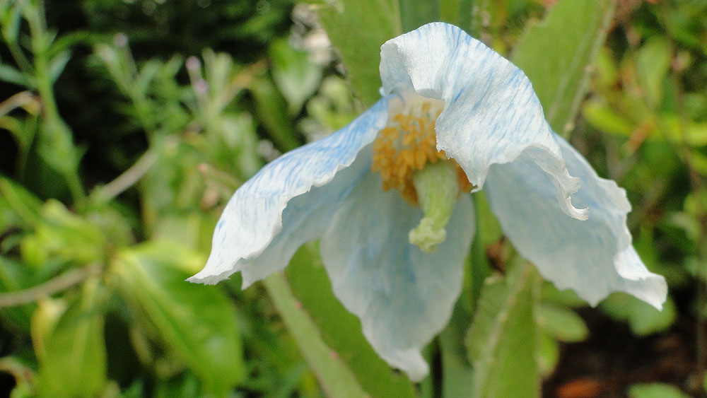 One of the advantages of writing about Meconopsis in this way is that one makes contact with people. This is a quite exquisite form of Meconopsis betonicifolia (or baileyi if you accept the current split). I planted these seedlings in my daughter in Cumbria's garden where meconopsis thrive. There are 4 plants and all are of this beautiful pastel pale blue. They are throwing side shoots so they should be perennial. These seeds were sent to me by Svetlana from Russia and they are a wonderful addition to my collections.